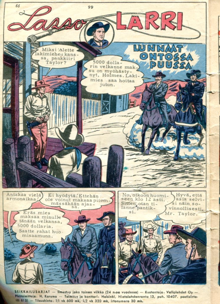 1 Lasso Larri Lunnaat Ontossa Puussa (6 sivua) Lash Larue Western 34 (nov 1952) Ransom in the Hollow Three!