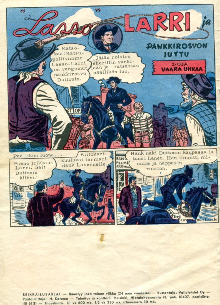 1 Lasso Larri ja Pankkirosvon Juttu osa 1 (6 sivua) Lash Larue Western 35 (dec 1952) Madman's Dutton Capture Part 1 On the Spot