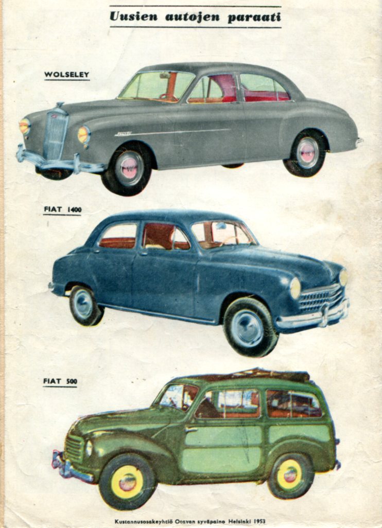 Takakansi: Uusien Autojen Paraati Wolseley, Fiat 1400, Fiat 500