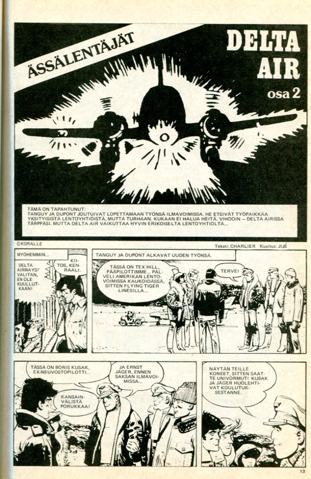 sivu 13 Ässälentäjät Delta Air osa 2 Tanguy & Laverdure 19 (1979) La Mystérieuse Escadre Delta Teksti: Charlier Piirtäjä: Jijé