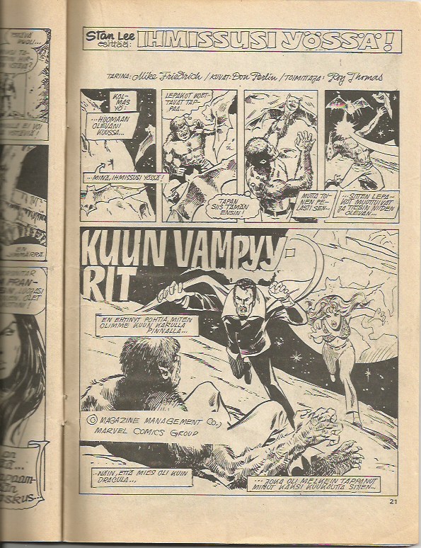 sivu 21 Ihmissusi Kuun Vampyyrit Werewolf by Night 19 (jul 1974) Vampires on the Moon! Piirtäjä: Don Perlin Teksti: Mike Friedrich
