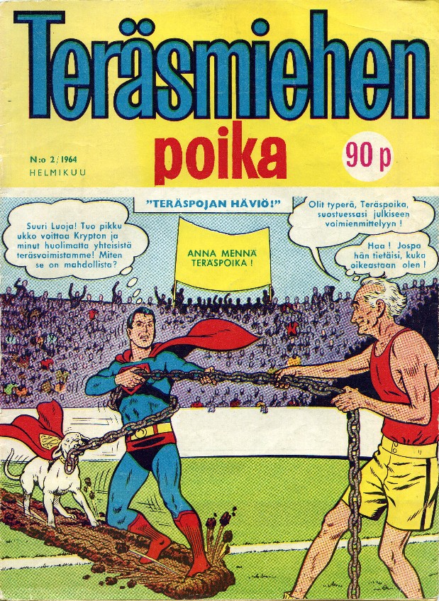TERÄSMIEHEN POIKA 1/1964Sivu 26Tarina: Teräspoika: Smallvillen taistelu Teräspienokaista vastaan!Sivuja: 9 s.Kirjoittaja: Jerry SiegelPiirtäjä: Curt SwanTussaaja: George KleinOriginaali: Superboy: Smallville's War Against Superbaby!Adventure Comics 311 (Aug 1963)Huom! Vaihtuneet Otsikot.