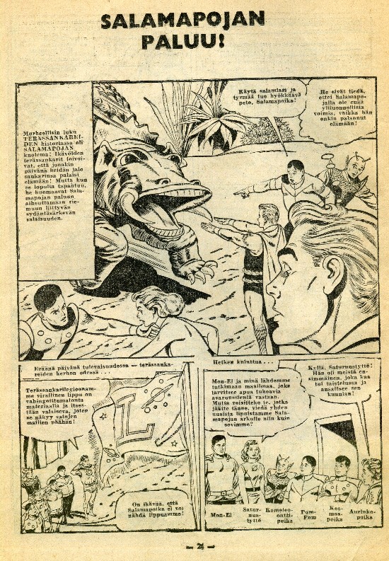 TERÄSMIEHEN POIKA 2/1964Sivu 24Tarina: Terässankareiden Legioona: Salamapojan paluuSivuja: 11 s.Kirjoittaja: Edmond HamiltonPiirtäjä: John ForteTussaaja: John ForteOriginaali: Tales of the Legion of Super-Heroes: The Return of Lightning Lad!Adventure Comics 308 (May 1963)