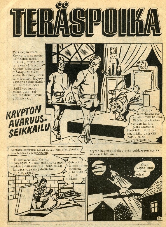 Tarina: Teräspoika: Poika Kryptonilta Sivuja: 12 s. Kirjoittaja: Otto Binder Piirtäjä: Curt Swan Tussaaja: Stan Kaye Originaali: Superboy: The Kid from Krypton Adventure Comics 242 (Nov 1957)