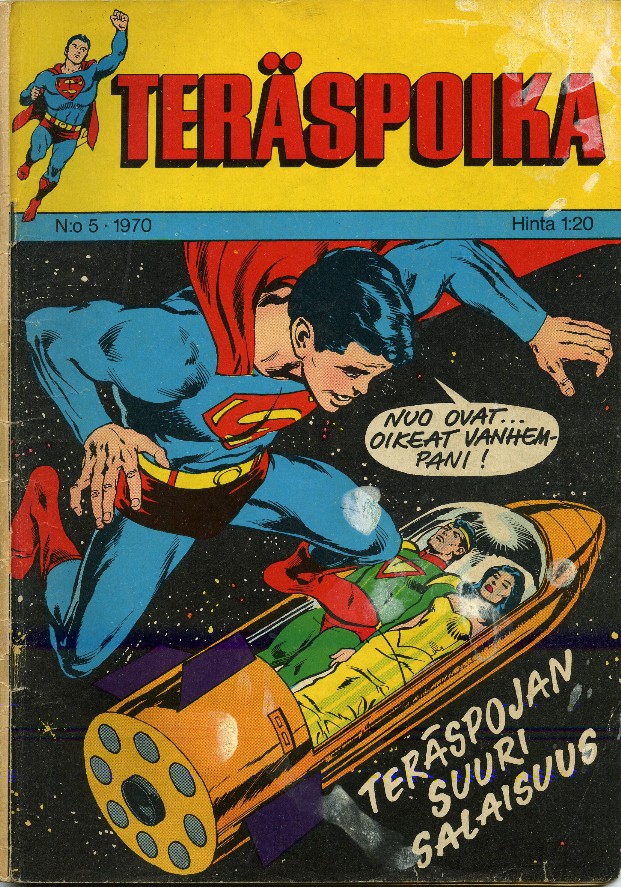 TERÄSPOIKA 5/1970Sivu 1Tarina: Teräspoika:Teräspojan suuri salaisuusSivuja: 24 s.Kirjoittaja: Frank RobbinsPiirtäjä: Bob BrownTussaaja: Wally WoodOriginaali: Superboy:Superboy's Darkest Secret!Superboy 158 (Jul 1969)