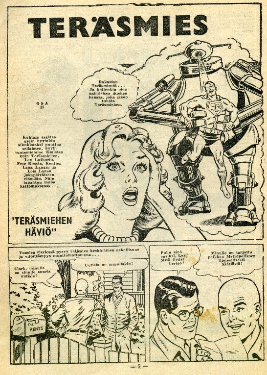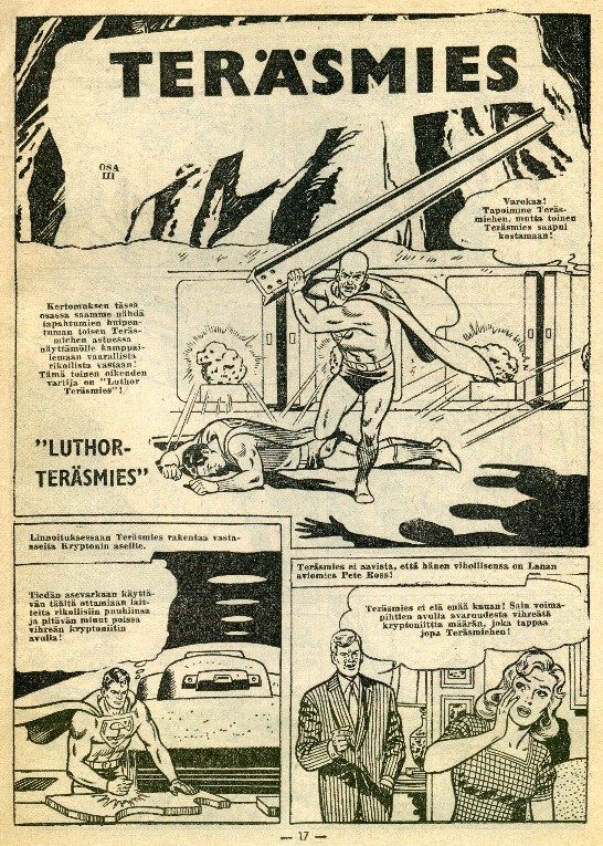 Tarina: Teräsmies: Teräsmiehen häviö (osa 2/3) Sivuja: 8 s. Kirjoittaja: Edmond Hamilton Piirtäjä: Curt Swan Tussaaja: George Klein Originaali: Superman: The Defeat of Superman (Ch. 2) Superman 175 (Feb 1965)